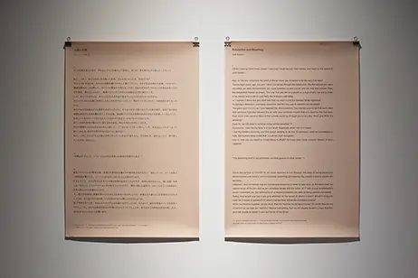 自分のアイデンティティーを探すことが社会的圧力のように迫る現代において、その根底にある「わたし」というフィクションはどのように生まれ、この生の中でどのような性質を持つのでしょうか。どうしてわたしたちは「わたし」を強固に求めたり、ある群衆の中で「わたし」を容易く放棄するのでしょうか。本展示は、学生時代から取り組んでいるシリーズ、近年取り組んでいるシリーズ、そして去年の秋に福岡アジア美術館のレジデンスで制作をしたプロジェクトのインスタレーションで構成されています。展示に向けて構成を考え、制作していく時間は、これまでの活動を一度自分なりに紐解き、そしてまた縫い合わせて結び直していくような作業でした。思えば、どうしてわたしたちは「わたし」というフィクションを背負って生きていくのだろう。その問いに身体を介して応えていくことが制作だったように思います。そして、近年パフォーマンスやインスタレーションの制作を通して、少しずつ、「わたし」から「わたしたち」へと興味が広がっているのを感じます。本展示にご来場いただく方々と共に、わたしたちの生に触れ、共に考察する機会となることを願っています。